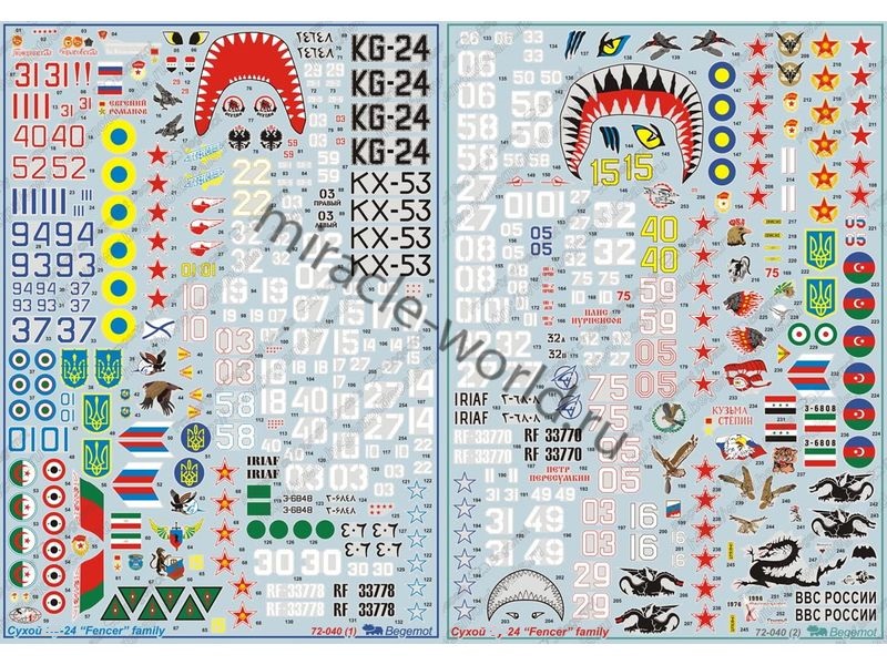BEGEMOT 72-040 ДЕКАЛЬ: САМОЛЕТ (С) ТИП 24 /55 ВАРИАНТОВ МАРКИРОВКИ/ 1/72