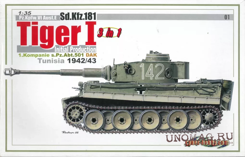 ТАНК PZ.KPFW.VI AUSF.E TIGER I INITIAL PRODUCTION, 1.KOMPANIE S.PZ.ABT.501 DAK, TUNISIA 1942/1943 (3 IN 1)