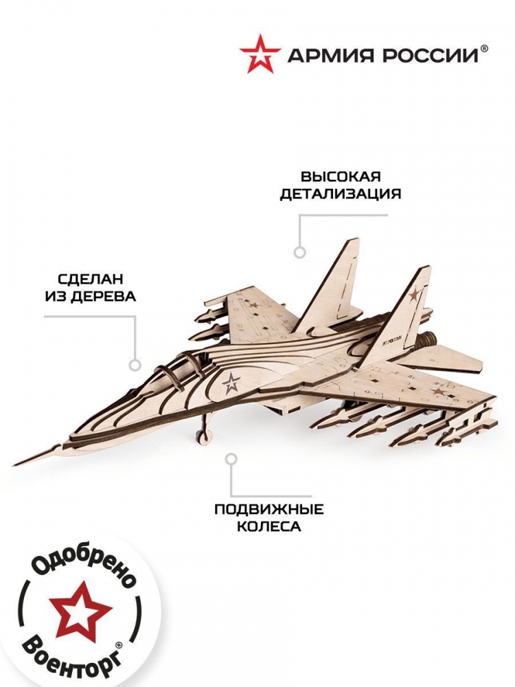 TY339-A15 АВИАЦИЯ КОНСТРУКТОР ИЗ ДЕРЕВА "АРМИЯ РОССИИ" РОССИЙСКИЙ ИСТРЕБИТЕЛЬ