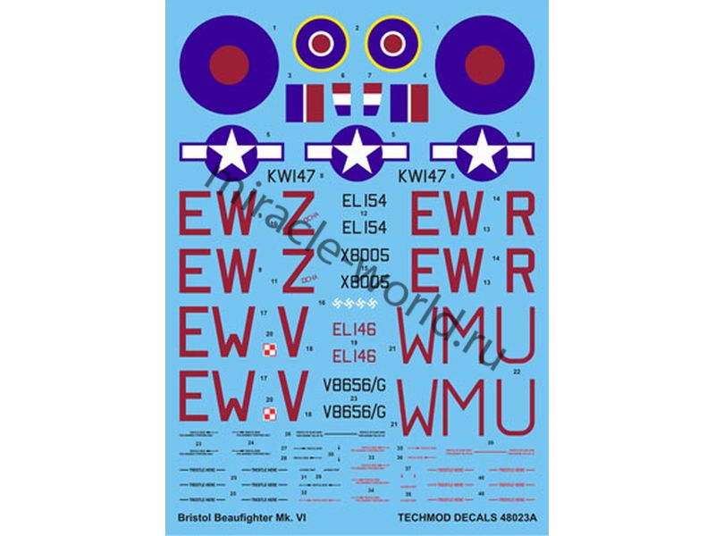 БАРАХОЛКА: TECHMODE 48023B ДЕКАЛЬ: BEAUFIGHTER MK.VI (BRISTOL) 1/144