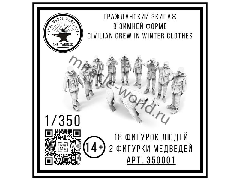 UMW350001 ГРАЖДАНСКИЙ ЭКИПАЖ В ЗИМНЕЙ ФОРМЕ (18 ФИГУР ЛЮДЕЙ, + 2 ФИГУРКИ МЕДВЕДЕЙ) 1/350