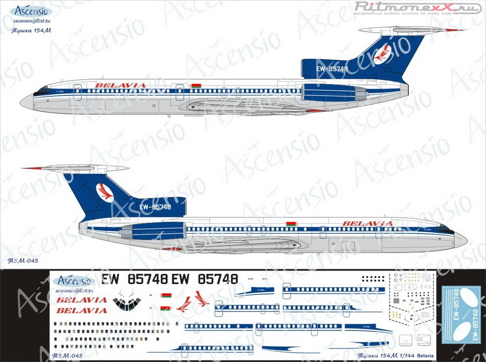 ДЕКАЛЬ НА САМОЛЁТ T.U.-154M (БЕЛАВИА)
