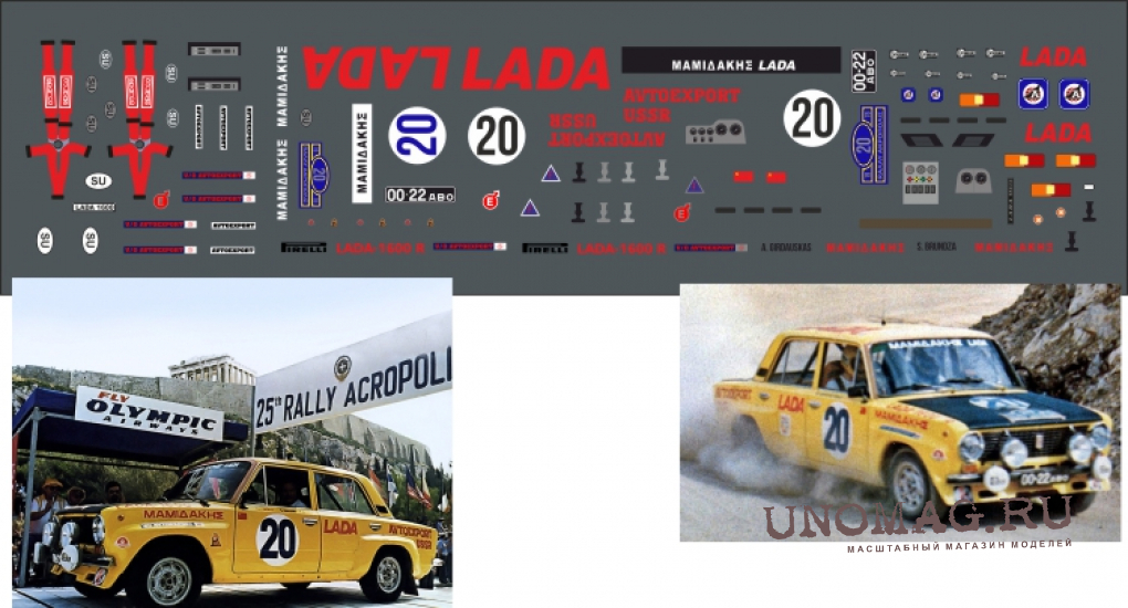 НАБОР ДЕКАЛЕЙ ВОЛЖСКИЙ 2101 БРУНДЗА 25 ACROPOLIS RALLY 1978