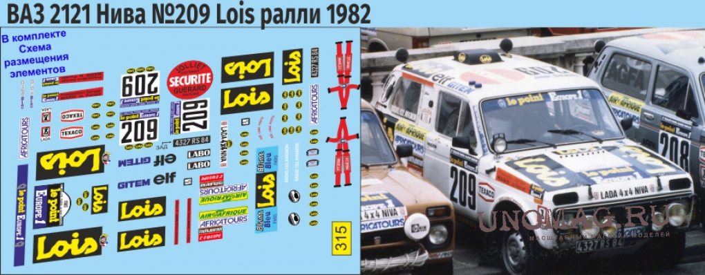 НАБОР ДЕКАЛЕЙ ВОЛЖСКИЙ 2121 НИВА №209 LOIS РАЛЛИ 1982