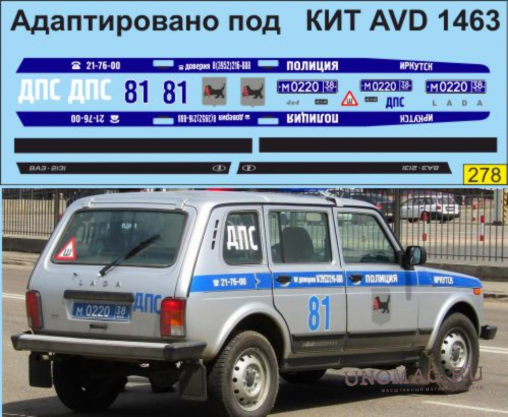 НАБОР ДЕКАЛЕЙ ВОЛЖСКИЙ 2131 ПОЛИЦИЯ ИРКУТСК (ПОД КИТ AVD)