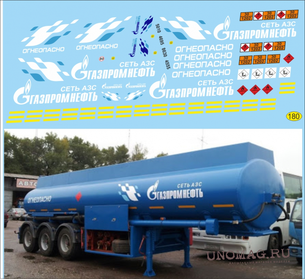 НАБОР ДЕКАЛЕЙ ЦИСТЕРНА ГАЗПРОМНЕФТЬ (СИНИЙ)