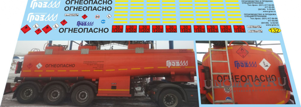 НАБОР ДЕКАЛЕЙ ЦИСТЕРНА БЕНЗОВОЗ ГРАЗ