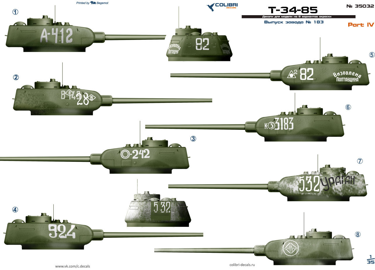 35032 COLIBRI DECALS 1/35 ДЕКАЛИ Т-34-85 ЗАВОД 183, ЧАСТЬ 4