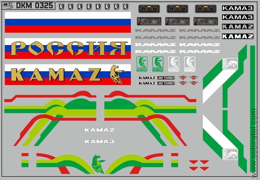 DKM0325 НАБОР ДЕКАЛЕЙ КАМСКИЙ (ПОЛОСЫ, НАДПИСИ, ЛОГОТИПЫ), ВАРИАНТ 2 (100X70 ММ)