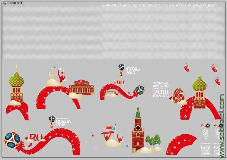 DKMB0123 НАБОР ДЕКАЛЕЙ АВТОБУСЫ ЧЕМПИОНАТА МИРА ПО ФУТБОЛУ МОСКВА (200X140 ММ)