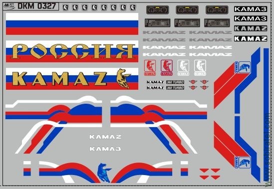 DKM0327 НАБОР ДЕКАЛЕЙ КАМСКИЙ (ПОЛОСЫ, НАДПИСИ, ЛОГОТИПЫ), ВАРИАНТ 4 (100X70 ММ)