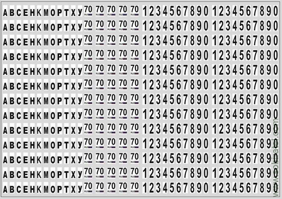 DKMB0086 НАБОР ДЕКАЛЕЙ ДУБЛИРУЮЩИЕ СОВРЕМЕННЫЕ НОМЕРА ДЛЯ ГРУЗОВИКОВ (200X140 ММ)
