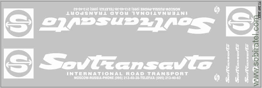 DKP0023 НАБОР ДЕКАЛЕЙ SOVTRANSAVTO ДЛЯ МИНСКИЙ-93971 БЕЛЫЙ, ВАРИАНТ 2 (100X290 ММ)