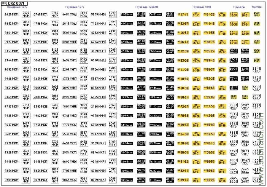 DKMB0071 НАБОР ДЕКАЛЕЙ НОМЕРНЫЕ ЗНАКИ СССР НА ПОЖАРНЫЕ, ГРУЗОВЫЕ, ТРАКТОРЫ И ПРИЦЕПЫ (200X140 ММ)