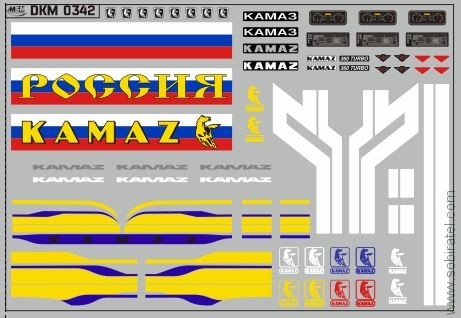 DKM0342 НАБОР ДЕКАЛЕЙ КАМСКИЙ (ПОЛОСЫ, НАДПИСИ, ЛОГОТИПЫ), ВАРИАНТ 19 (100X70 ММ)