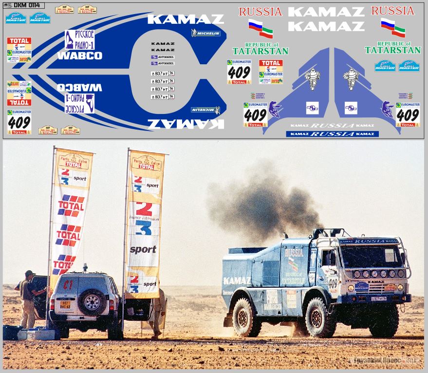 НАБОР ДЕКАЛЕЙ КАМСКИЙ ГРУЗОВИК МАСТЕР РАЛЛИ ДАКАР NO. 409 (100Х140)