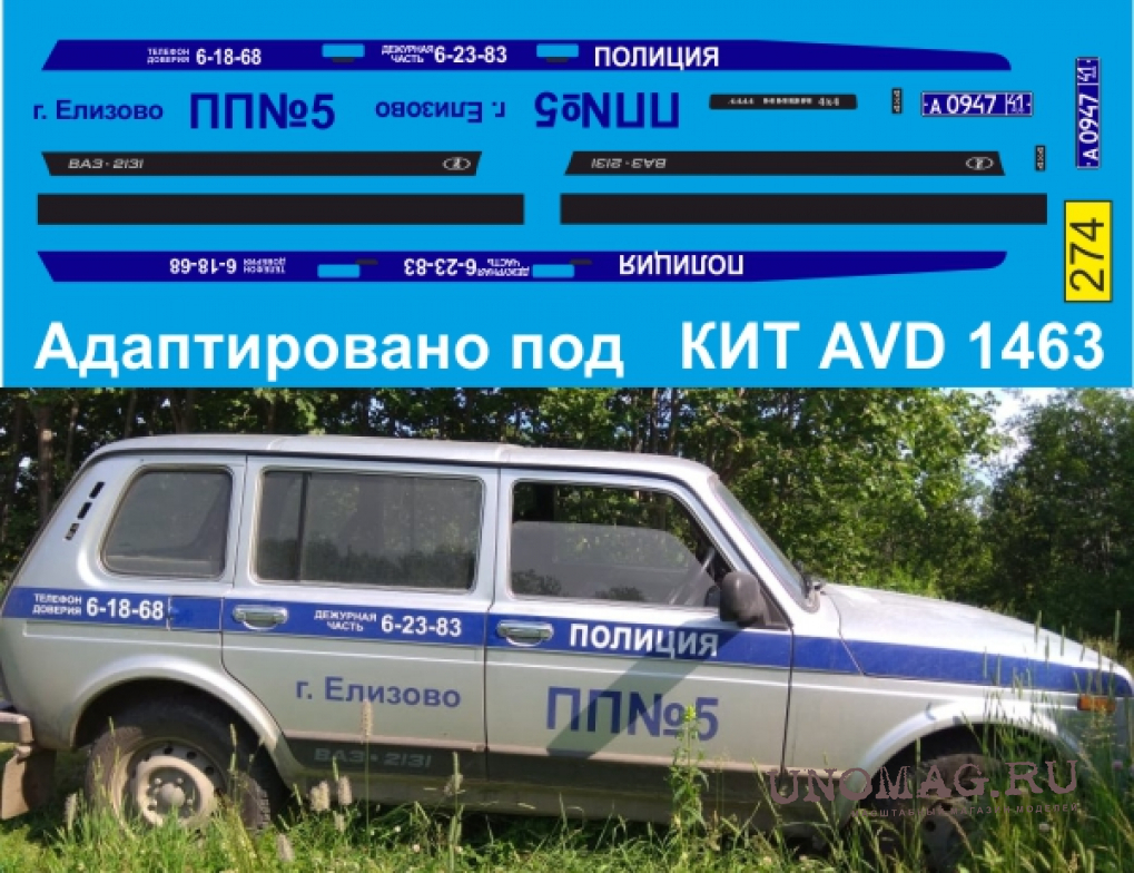 НАБОР ДЕКАЛЕЙ ВОЛЖСКИЙ 2131 ПОЛИЦИЯ ЕЛИЗОВО (ПОД КИТ AVD)