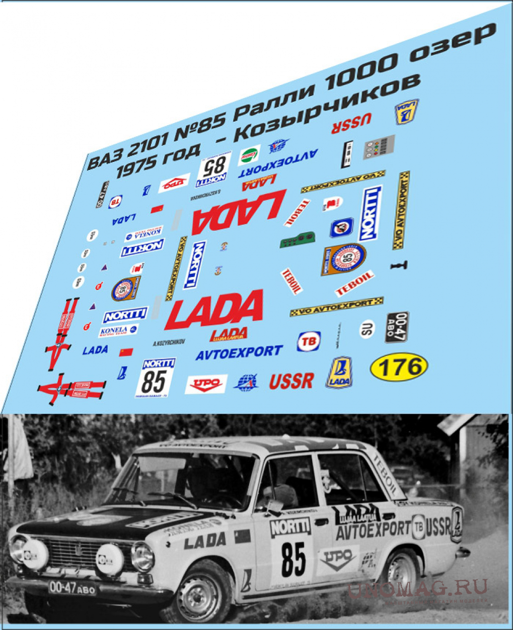 НАБОР ДЕКАЛЕЙ ВОЛЖСКИЙ 2101 №85 (КОЗЫРЧИКОВ, КОЗЫРЧИКОВА) РАЛЛИ 1000 ОЗЕР 1975 Г