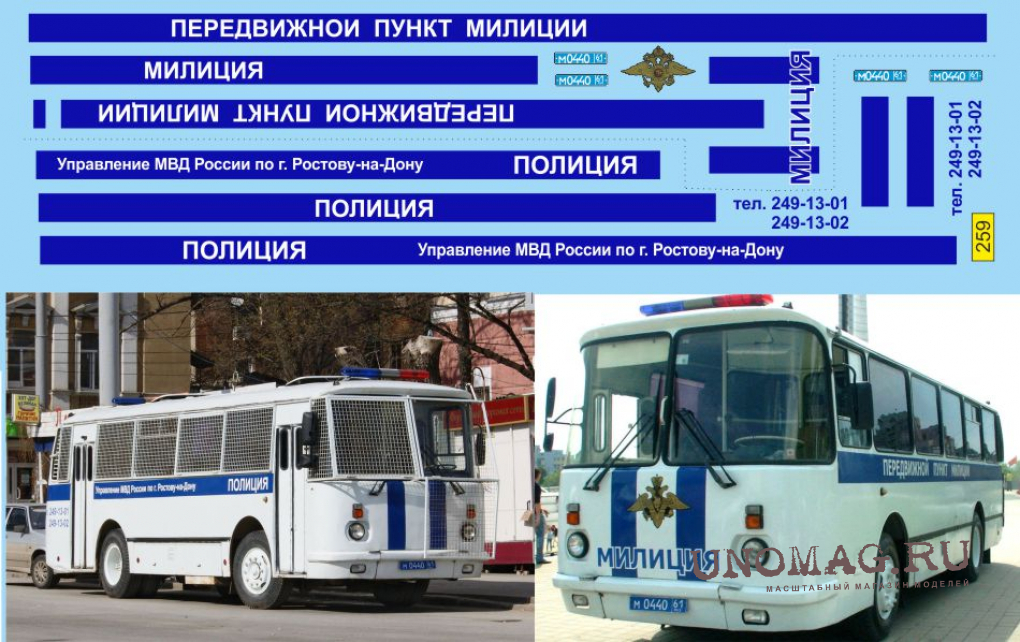 НАБОР ДЕКАЛЕЙ АВТОБУС ЛАЗ ПОЛИЦИЯ (КОМПЛЕКТ НА 2 АВТОБУСА)