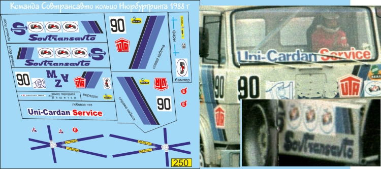 НАБОР ДЕКАЛЕЙ МИНСКИЙ-5432С №90 КОМАНДА СОВТРАНСАВТО КОЛЬЦО НЮРБУРГРИНГА 1988 Г