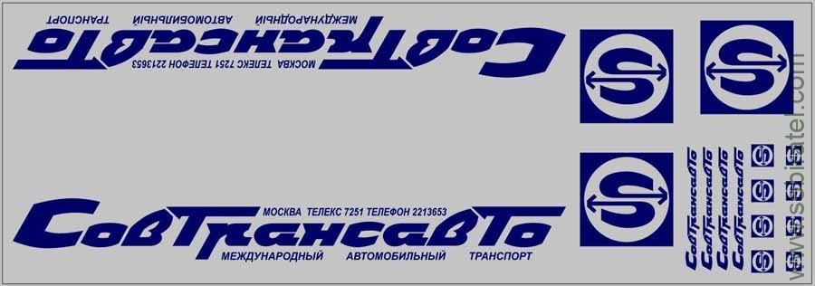 DKP0001 НАБОР ДЕКАЛЕЙ СОВТРАНСАВТО ДЛЯ МИНСКИЙ-93971 СИНИЙ, ВАРИАНТ 3 (100X290 ММ)