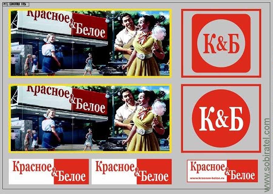 DKMB0115 НАБОР ДЕКАЛЕЙ ФУРГОН МАГАЗИНА КРАСНОЕ И БЕЛОЕ, ВАРИАНТ 4 (200X140 ММ)