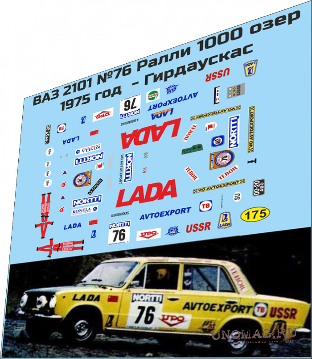 НАБОР ДЕКАЛЕЙ ВОЛЖСКИЙ 2101 №76 (ГИРДАУСКАС, ГИРДАУСКАС) РАЛЛИ 1000 ОЗЕР 1975 Г