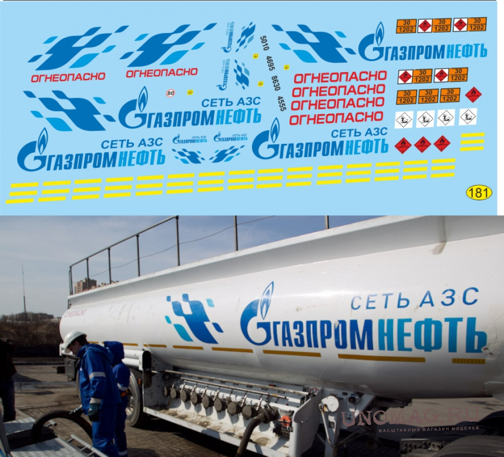 НАБОР ДЕКАЛЕЙ ЦИСТЕРНА ГАЗПРОМНЕФТЬ (БЕЛЫЙ)