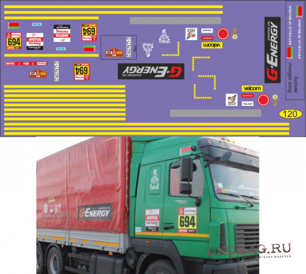 DKM0390 НАБОР ДЕКАЛЕЙ МАЗ (ПОЛОСЫ, НАДПИСИ, ЛОГОТИПЫ), ВАРИАНТ 18 (100X70 ММ)