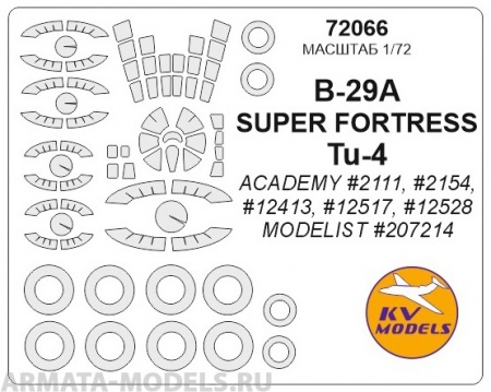 KV ОКРАСОЧНАЯ МАСКА B-29A SUPER FORTRESS / TU-4 (ACADEMY #2111 #2154 #12413 #12517 #12528 / MODELIST #207214) + МАСКИ НА ДИСКИ И КОЛЕСА ДЛЯ МОДЕЛЕЙ ФИРМЫ ACADEMY / MODELIST
