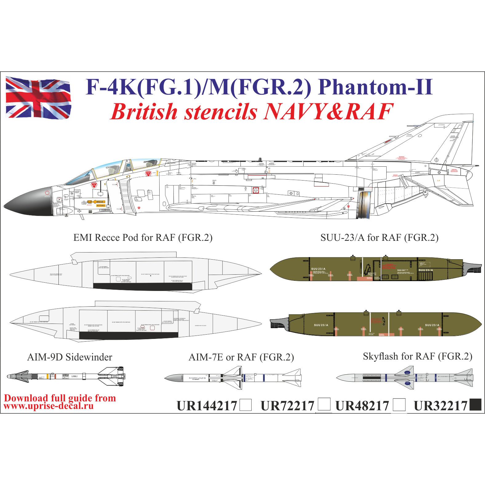UR32217 UPRISE 1/32 ДЕКАЛЬ ДЛЯ F-4K(FG.1)/M(FGR.2) PHANTOM-II BRITISH, ТЕХ. НАДПИСИ