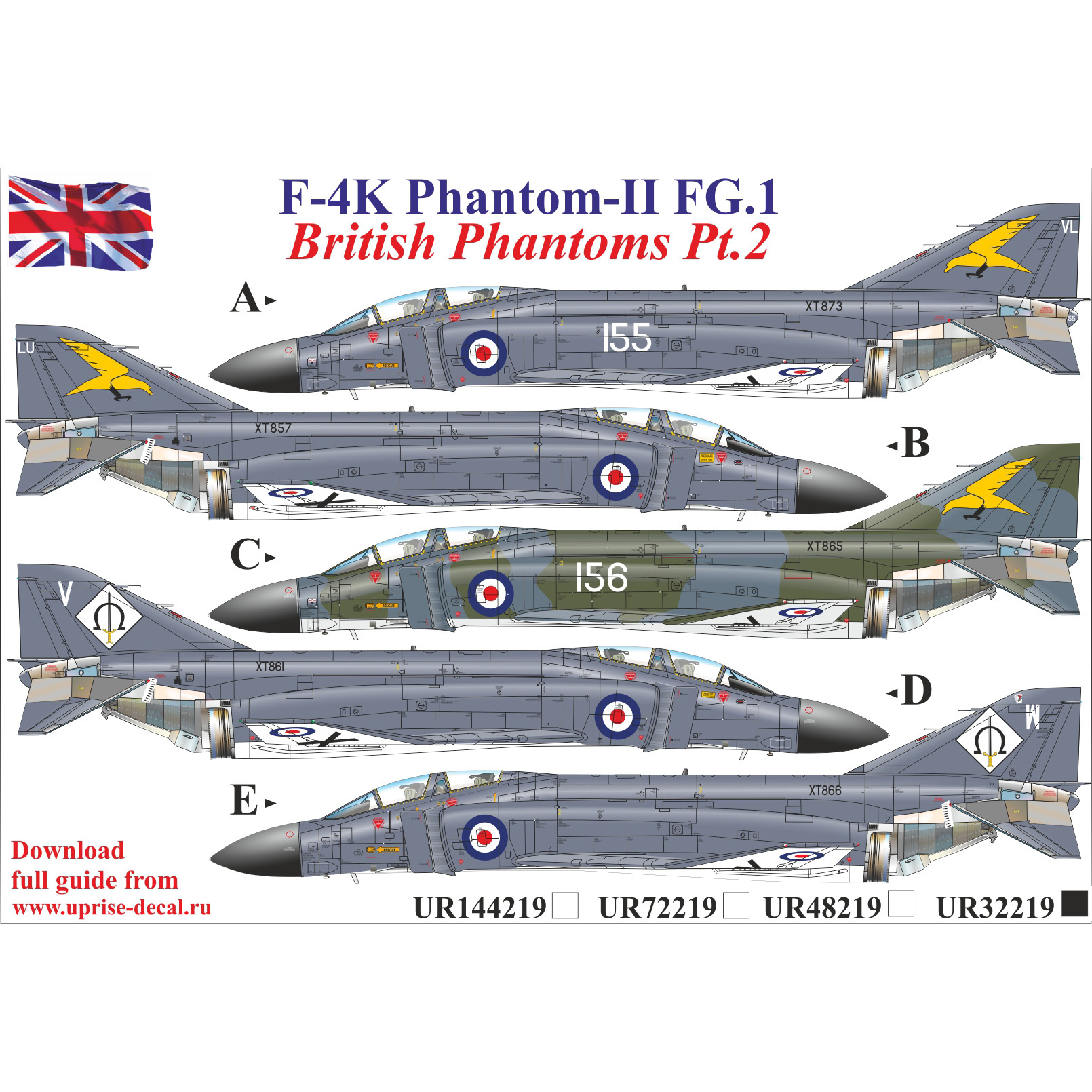 UR32219 UPRISE 1/32 ДЕКАЛЬ ДЛЯ F-4K PHANTOM-II FG.1 BRITISH PHANTOMS PT.2, БЕЗ ТЕХ. НАДПИСЕЙ
