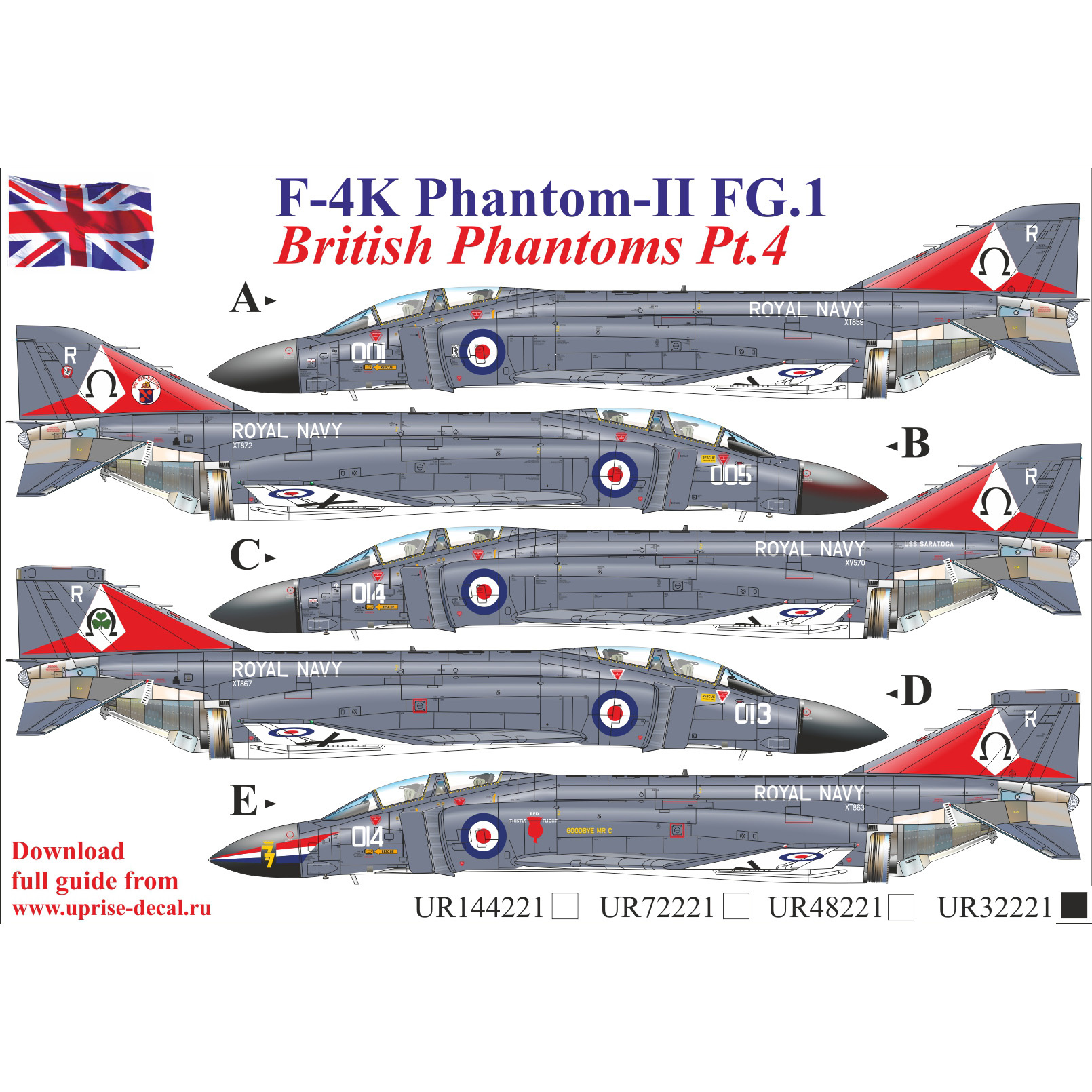 UR32221 UPRISE 1/32 ДЕКАЛЬ ДЛЯ F-4K PHANTOM-II FG.1 BRITISH PHANTOMS PT.4, БЕЗ ТЕХ. НАДПИСЕЙ