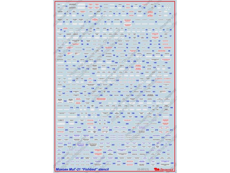 ДЕКАЛЬ МИКОЯН МИГ-21 ТЕХНИЧЕСКИЕ НАДПИСИ.