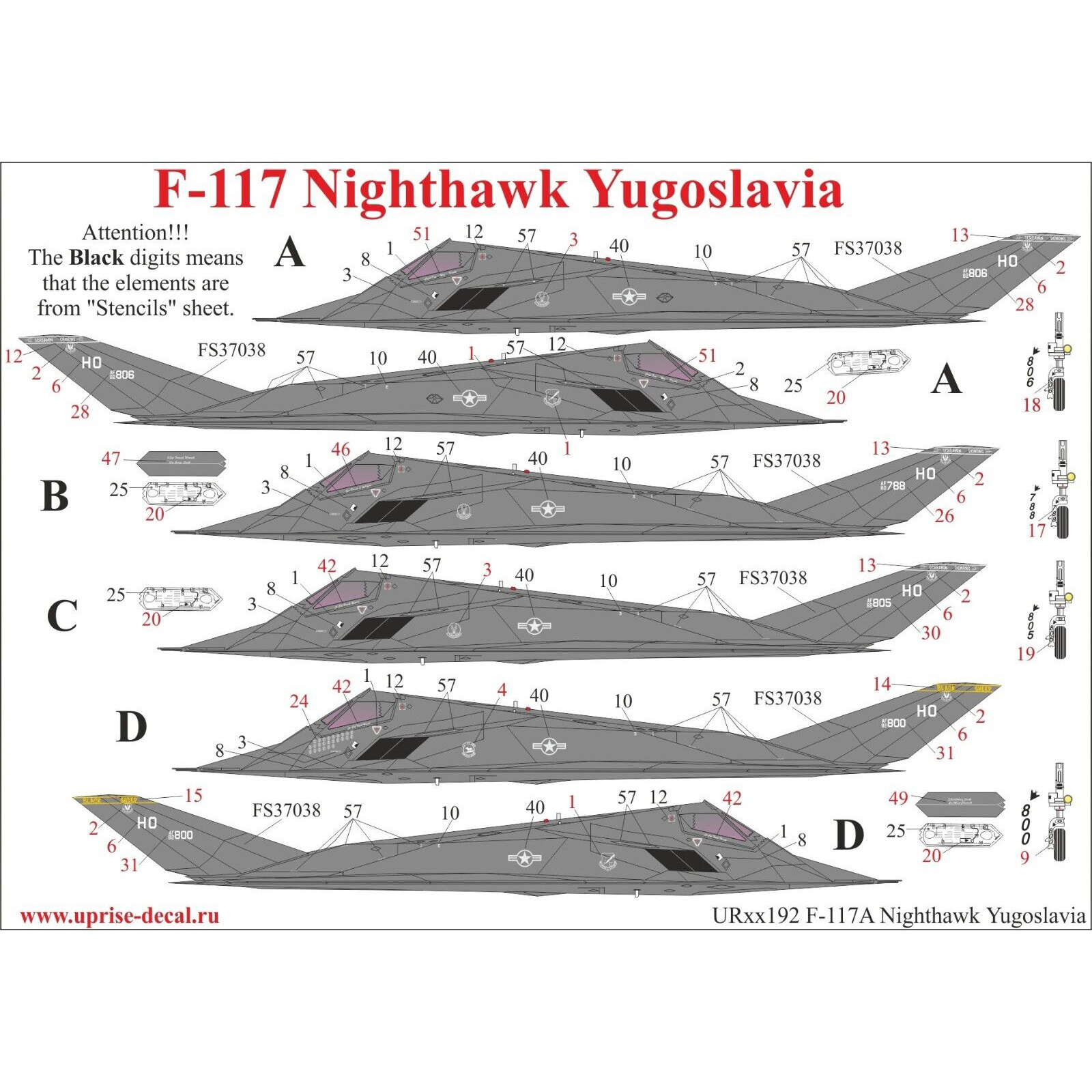 UR144192 UPRISE 1/144 ДЕКАЛЬ ДЛЯ F-117 NIGHTHAWK OVER JUGOSLAVIA, С ТЕХ. НАДПИСЯМИ