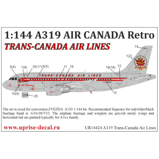 URC14424 UPRISE ДЕКАЛИ ДЛЯ A319 TRANS-CANADA AIR LINES RETRO OF AIR CANADA