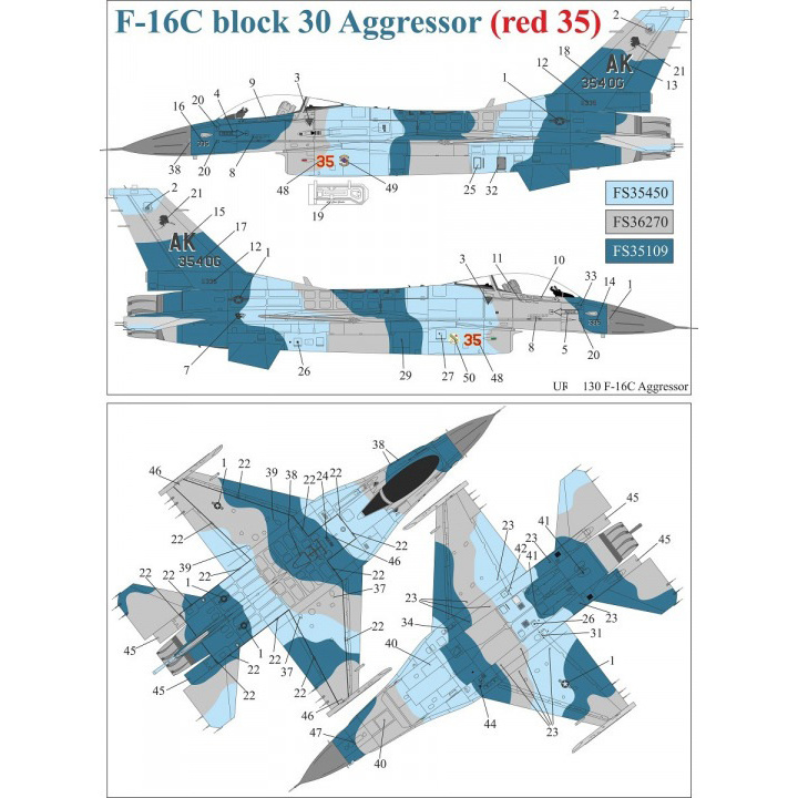 UR144130 UPRISE ДЕКАЛИ ДЛЯ F-16C AGGRESSOR RED 35