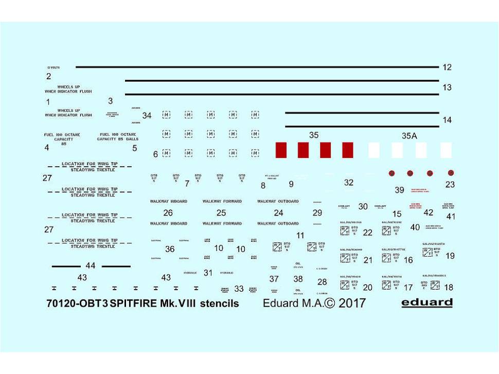 ДЕКАЛЬ SPITFIRE MK. VIII ТЕХНИЧЕСКИЕ НАДПИСИ, EDUARD.