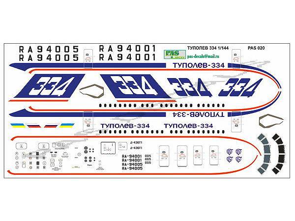 ДЕКАЛЬ ЛАЗЕРНАЯ ТУПОЛЕВ 334, 2 ВАРИАНТА.