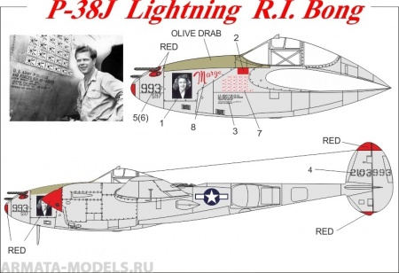 ДЕКАЛИ ДЛЯ P-38J LIGHTNING R.I. BONG