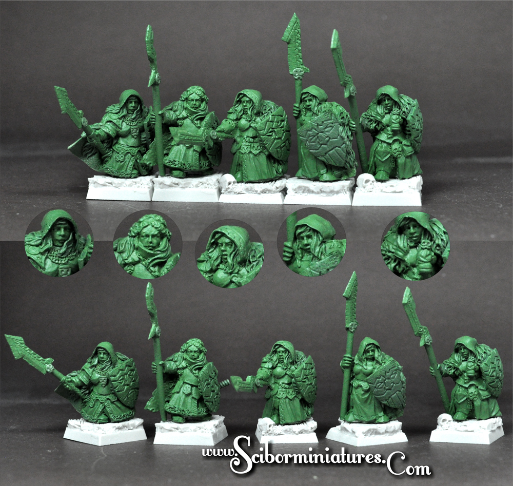 28FM0701 DWARVEN FEMALE SPEARMEN - 5 MINIS SET