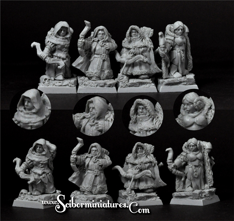 28FM0668 DWARVEN FEMALE ARCHERS - 4 MINIATURES SET