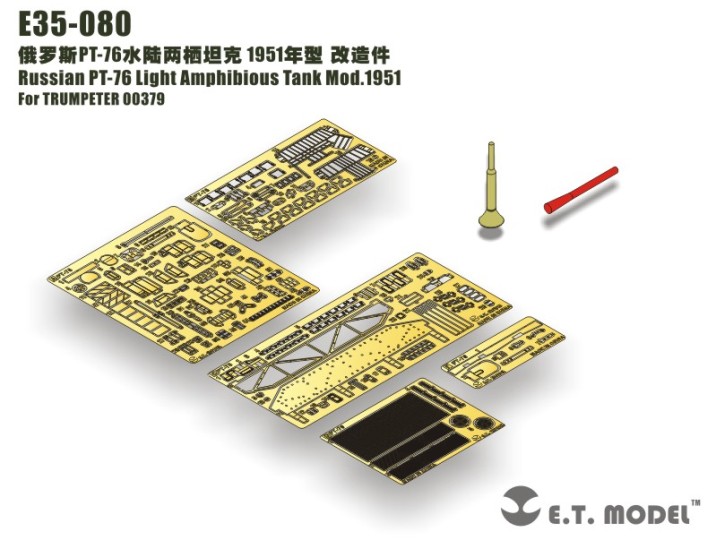 E35-080 ФОТОТРАВЛЕНИЕ SOVIET LIGHT AMPHIBIOUS TANK PT-76 MOD.1951 TRUMP 00379