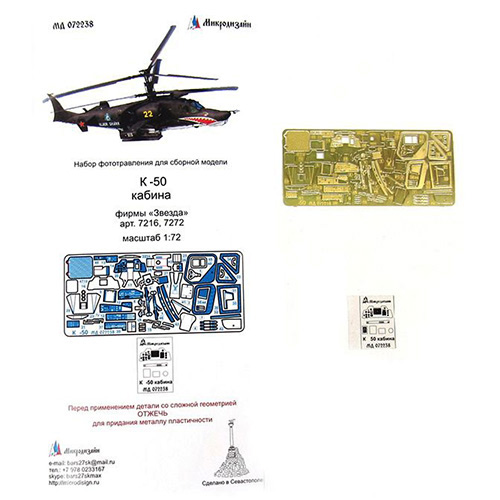 072238 МИКРОДИЗАЙН ФОТОТРАВЛЕНИЕ ДЛЯ К-50 КАБИНА (ЗВЕЗДА)