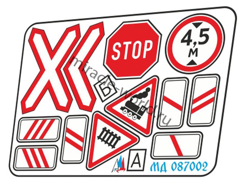 МИКРОДИЗАЙН 087002 НАБОР ЗНАКОВ "ЖЕЛЕЗНОДОРОЖНЫЙ ПЕРЕЕЗД" /ЦВЕТНОЙ НАБОР ФОТОТРАВЛЕНИЯ/ 1/87