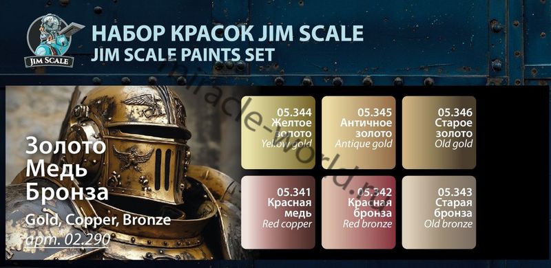 JIM SCALE 02.290 НАБОР КРАСОК «ЗОЛОТО, МЕДЬ, БРОНЗА / GOLD, COOPER, BRONZE» (6Х18МЛ.)
