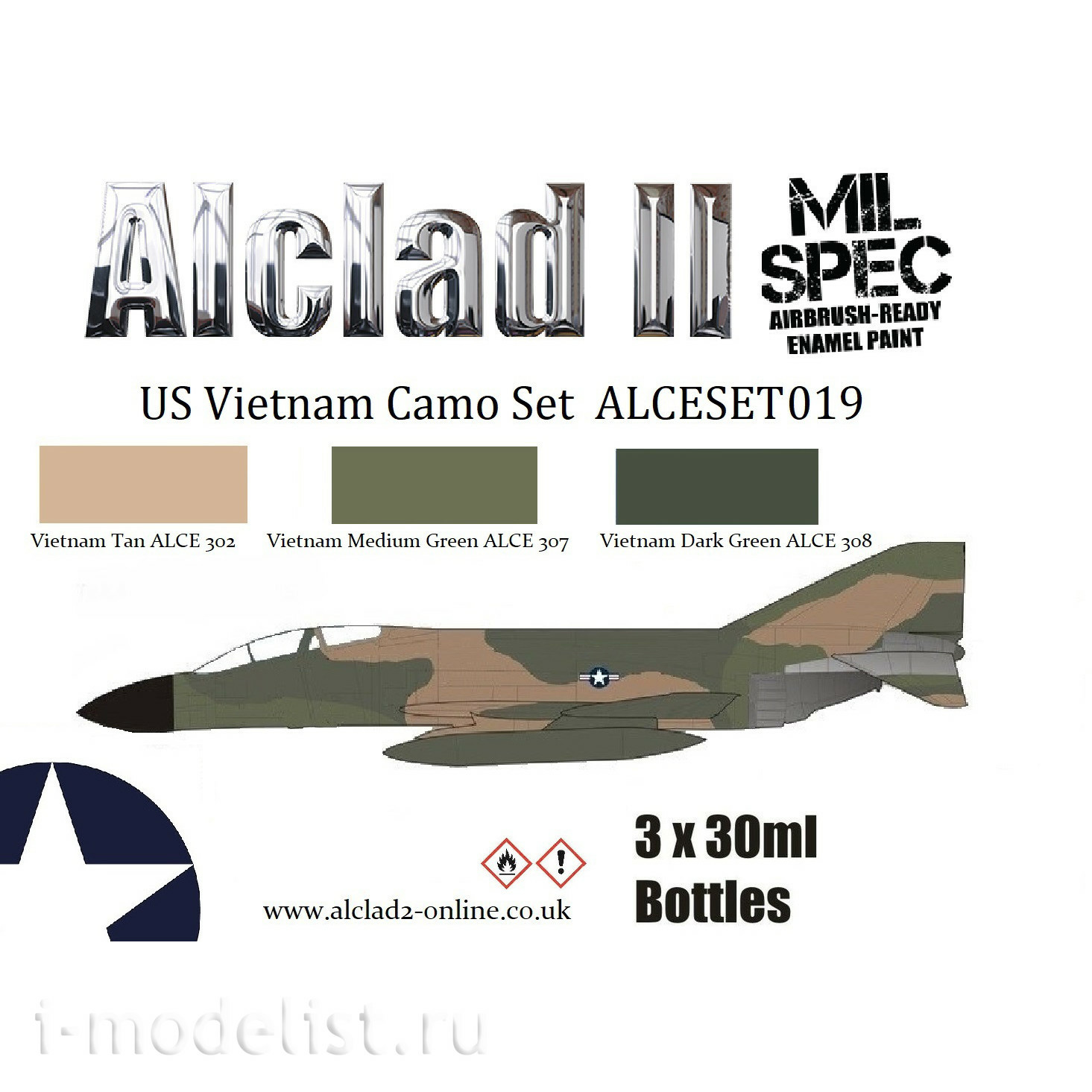 ALCESET-019 ALCLAD II НАБОР КРАСОК "US VIETNAM CAMOUFLAGE"