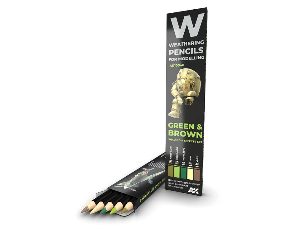 АКВАРЕЛЬНЫЕ КАРАНДАШИ ДЛЯ ВЕЗЕРИНГА AK INTERACTIVE. GREEN & BROWN: SHADING & EFFECTS SET
