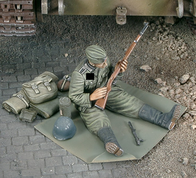 GERMAN SOLDIER CLEANS UP HIS RIFLE WWII