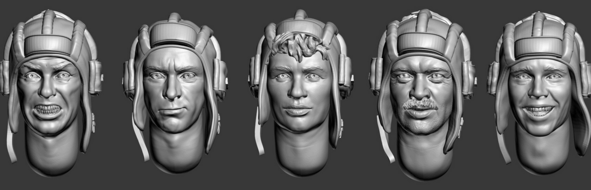 HEADS W/FJ HELMETS, SET #2 (5. PCS)